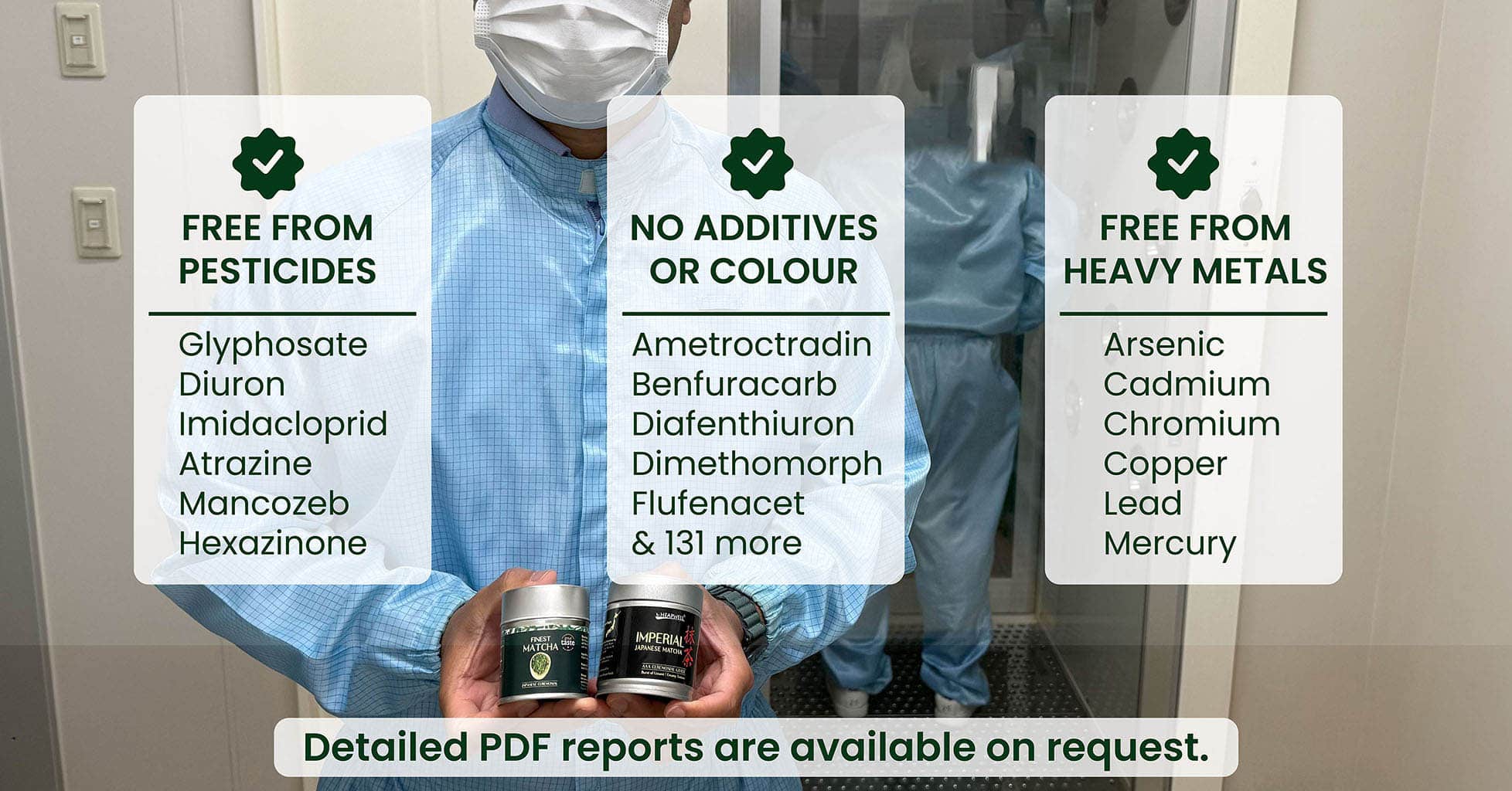 At Heapwell Superfoods, we take pride in independently vetting our matcha offerings on a regular basis. We hold ourselves to the highest standards by adhering to some of the most rigorous international food-safety certifications.