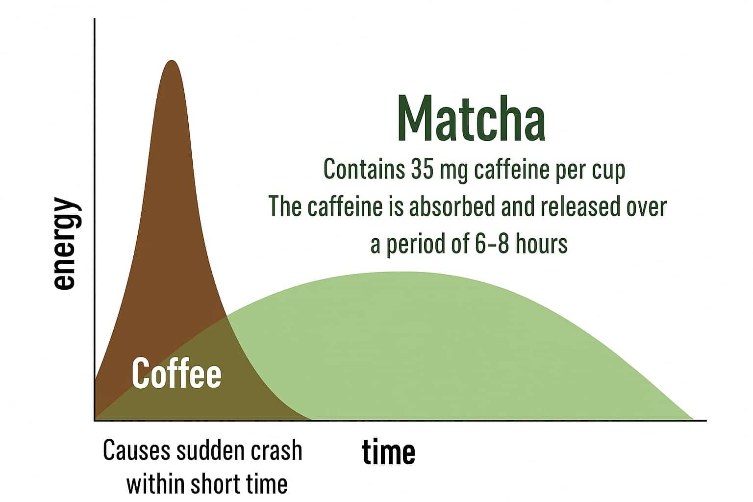 Unlike coffee, a cup of matcha tea contains a special compound called L-theanine, which works its magic on the effects of caffeine in matcha and helps you stay relaxed and alert for a cool 6-8 hours.